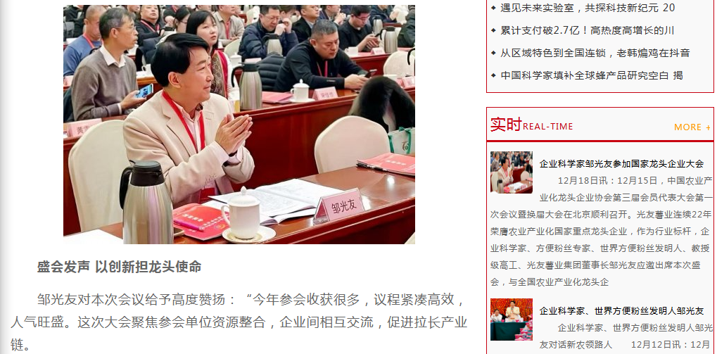 轉(zhuǎn)載中國食品經(jīng)濟網(wǎng)-企業(yè)科學家鄒光友出席國家龍頭企業(yè)大會