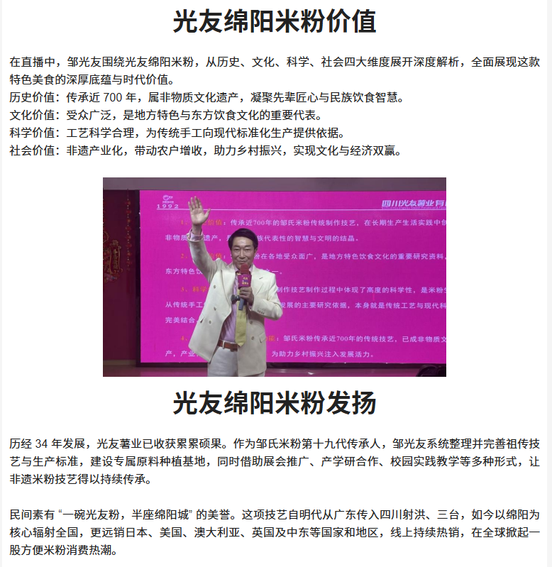 轉(zhuǎn)載四川商界網(wǎng) 鄒光友專題直播《光友綿陽(yáng)米粉 傳承中國(guó)好味道》